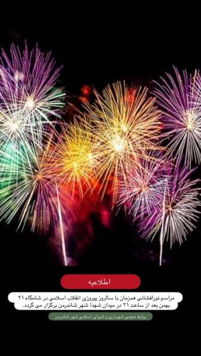 مراسم نورافشانی همزمان با سالروز پیروزی انقلاب اسلامیشهرداری شاندرمن۲۲ بهمن ۱۴۰۴روابط عمومی شهرداری شاندرمن مراسم نورافشانی همزمان با سالروز پیروزی انقلاب اسلامی بعد از ساعت ۲۱ در میدان شهدا شهر شاندرمن برگزار می گردد. روابط عمومی شهرداری و شورای اسلامی شهر شاندرمن برچسبها# شهرداری شاندرمن# شورای اسلامی شاندرمن به اشتراک بگذارید روابط عمومی شهرداری شاندرمن مقالات: 226 نوشته قبلی به مناسبت ایام الله دهه مبارک فجر پروژه های زیر توسط شهرداری شاندرمن به بهره برداری رسید نوشته بعدی در دهمین روز از ایام الله فجر پروژههای عمرانی شهرداری شاندرمن به بهره برداری رسید پاسخ دهیدلغو پاسخنشانی ایمیل شما منتشر نخواهد شد. بخشهای موردنیاز علامتگذاری شدهاند * نام * پست الکترونیک * سایت اینترنتی اضافه کردن نظر * برای دفعه بعد که نظر می دهم نام، ایمیل و وب سایت من را در این مرورگر ذخیره کنید.فرستادن دیدگاه
